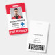 Personalize these vertical medical personnel or first responder badges with an employee photo and name, along with multiple custom text fields for title or role, hospital or healthcare facility name, employee ID number, or valid through date, along with the company logo. "FIRST RESPONDER" or your desired text appears along the bottom in bold white lettering for easy identification. Customize with a barcode on the back if needed, along with return information or other details.