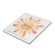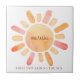 A sweet glowing orange gold boho style sun with rays, first trip around the sun, watercolor boho style kid's 1st birthday ceramic tile. A bold lush orange gold watercolor. A memento to keep.