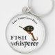 Funny personalized fishing keychain for all fishermen and fisherwomen. Fish Whisperer in text with a full color fishing lure near the top. Printed on four sides.
