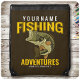Personalized Fishing Adventures Largemouth Bass Fish Angler with Faux Dark Wood Backdrop Design - Customize with your Name and Custom Text!