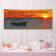 What a unique banner for a Retirement or Graduation Party. A background of our original photograph of a fishing boat in silhouette at sunset, with orange sky. Two lines of black text of your choosing - suitable for any occasion. Select Indoor or Outdoor material. All Rights Reserved © 2016 Alan & Marcia Socolik.