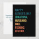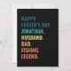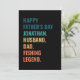 A bold retro typography postcard celebrating a Husband, Dad, and Fishing Legend.