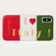 Personalized Flag of Italy iPhone X Case design features an image of the Flag of Italy as background to the phrase, "I heart Italy!" At the bottom of design is featured your name in a lovely cursive script.