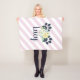 A fun, whimsical fleece blanket that can be personalized just for your furry friend. This blanket features two navy blue paw prints and a fun bouquet of flowers placed upon an adorable pink striped background.