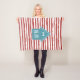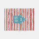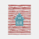 A fun, playful fleece blanket that can be personalized just for your furry friend. This blanket features a turquoise dog house placed upon a background of red stripes.