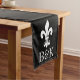 Personalized fleur de lis table runner for wedding. Elegant black and white design. Great for romantic wedding party, bridal shower, anniversary etc. Chic monogrammed design with classy symbol and name initial letters of bride and groom couple. Customizable background color.