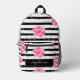 Personalized Floral Black Stripe and Gold Confetti Printed Backpack
