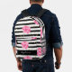 This cute girly backpack features pink watercolor flowers with black stripes and gold confetti pattern. Add your name on the front to personalize.