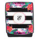 school or casual this tote bag will always keep you trendy and stylish.hand drawn watercolor roses, leaves and berries grouped together to make a frame placed on black broad striped background with sparkling circular border enclosing initial. click personalized button to add your initial or any text.