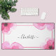 This elegant botanical watercolor desk mat is decorated with light and airy pink watercolor florals.