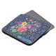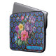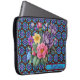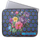 A Colorful Purple, Brown And Blue Laptop Sleeve You Can Personalize For Travel Designed With A Floral Pattern And Flower Center