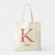 Elegant personalized floral monogram with the letter K decorated with beautiful pink roses. Custom name 'Kyla' in elegant script below. This feminine and romantic design is perfect for daily use or as a thoughtful personalized gift for birthdays, bridesmaids, or special occasions. High-quality canvas tote bag.