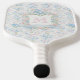 Play with timeless grace using this personalized floral monogram pickleball paddle. Featuring a soft all-over pattern of pastel blossoms in gentle blues, blush pinks, and airy greenery, this design brings classic, heirloom-inspired beauty to the court. The centered monogram is framed by an elegant floral wreath and ribbon detail, creating a refined focal point that feels both personal and sophisticated. Perfect for casual games, social matches, or gifting, this paddle blends beautiful design with comfortable playability—ideal for players who love traditional style with a romantic touch.