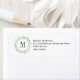 Your personalized monogram alphabet letters enclosed within a circular wreath of lovely fresh summer leaves and foliage.
