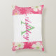 Pretty, romantic, floral pattern for Lumbar size accent Throw Pillows. Personalized custom monogram, initial and name in Pink and Green colors on a white background on the front of the pillow and a Pink color on the back - this color can be changed and personalized, click the customize button. This trendy, chic, girly and stylish fashionable design is perfect for bedrooms, lounge, sofa, couch, living room, boats, beach houses, holiday houses, teenagers, home decor, nursery or office. A perfect gift for a new home or house warming, suitable for women, teenagers, girls, baby or kids bedroom. Personalize this gift by adding your own name or initials to make it your own. Choose your own font and colors.