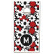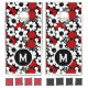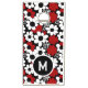 Red, black and white flowers whimsical tiled pattern cornhole game. Add Initial in the personalized name.