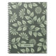 Personalized floral pattern spiral notebook. Green floral pattern with small name field in block text at bottom center.