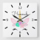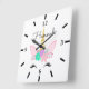 Personalized Floral Smiling Unicorn Square Wall Clock
