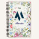 Brighten your writing routine with this personalized floral spiral notebook featuring a bold initial "M" and your custom name on a vibrant watercolor floral background.