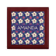 Add a charming touch to your dressing table or surprise someone special with this personalized wooden jewelry keepsake box. Featuring a bold floral pattern in cream, red, and green on a deep navy background, this box is customized with a name in a vintage-style label for a timeless look. Crafted from quality wood, it’s ideal for storing rings, earrings, or other small treasures. A perfect gift for birthdays, anniversaries, bridesmaids, or just because.