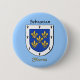 Spanish surname Flores historical arms Pin-back Button. First name text is fully customizable. Change the color of the background, it's customizable also!