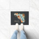 Rep your home state or favorite vacation spot with this cute Florida doormat featuring a silhouette map of the state adorned with colorful tropical flowers, green foliage, and juicy oranges. "Welcome" is inscribed inside in hand lettered script. Personalize with your family name and year established.