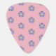 A pretty pink guitar pick with one big blue flower on the front . You can personalize it with your name using the template . On the back , you have a pattern of the same flower , which is a forget-me-not . This design was created to raise awareness to Alzheimer's disease .