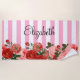 It's time to stop and smell the roses. Or at least lie on some near the pool or beach on this pretty pink and white striped and floral towel with your name written across the top.