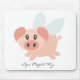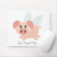 Cute mouse mat featuring a kawaii style flying pig illustration.