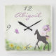 Personalized Silhouette Foal, Butterfly and Flowers Horse Wall Clock.