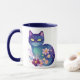 Cute purple and blue folk art style cats and flowers. Add a name in the personalize area.