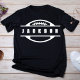 Step into the spotlight with this personalized football monogram t-shirt. Designed with football enthusiasts in mind, this shirt features a bold football graphic with a customizable name banner, making it perfect for showcasing your team pride or supporting your favorite player. The sleek black color of the shirt is complemented by the striking white design, creating a classic and timeless look. Whether you're at the game, watching from home, or just want to display your love for the sport, this t-shirt offers a unique and personal touch.