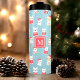 Celebrate the holiday season with this adorable personalized tumbler featuring a festive pattern of French Bulldogs dressed in Santa hats and winter attire. The playful design adds a touch of whimsy to your hot cocoa or coffee. Make it truly yours by adding a monogram or special message. This durable stainless steel tumbler keeps drinks warm and your spirits bright throughout the season. A perfect gift for dog lovers and French Bulldog enthusiasts.