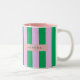 Personalized Fresh Green and Pink Striped Retro Two-Tone Coffee Mug
