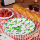 Birthday plates. Cute frog on a lily pad with balloons personalized birthday party paper plates.