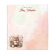 Cute personalized notepad with an ai watercolor green and pink whimsical watercolor fox in flowers woodland forest animals illustration background. Add your name in the personalize area.