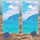 There's nothing more relaxing than the sound of beautiful turquoise ocean waves. Combine the beauty with fun at your next cornhole game. The text is easy to personalize with your own names. The top section says, "Fun in the Sun!" in stylish text.
