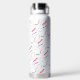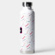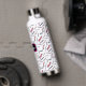 This insulated water bottle features colorful typography with a foil texture.