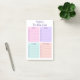 This practical, clean looking, personalized, notepad with four colored categories with lines to write on and boxes to check off would be great for helping you organize your daily tasks. It's soft pastel colors are pink, purple, aqua, and peach and the modern, clean fonts are in purple. Get some for yourself and some for friends and loved ones. Because who can't use a little help staying organized and on task every day?