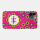This hot pink cell case cover has a colorful pattern of circles, circles, and more circles in bright yellow, green, burgundy, and navy. Customize the white and yellow circle with your name, initials, monogram, or other wording. Make the circle and name as big or little as you like, or remove it completely.