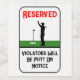 Personalized Funny Golf Parking Label. This modern and trendy golf parking label is perfect for any golf fan or golfer. Featuring the humorous text "Reserved" "Violators Will Be Putt On Notice" and a silhouette of a golfer putting on a green, this label makes a great gift for dad, grandpa, or any golf enthusiast. Ideal for birthdays, Father's Day, or as a Christmas present, this elegant and fun design adds a touch of humor to any space. Whether for a golf course or a hobby room, this personalized label is a cool and cute way to show love for the sport. Customize it with a name to make it a unique and special gift.