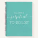 Teal blue notebook for your to do list, with a funny cover quote - "Perpetual To-Do List", personalized with your name or a custom text for a subject, topic, or job title.