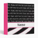 This cute back to school Avery binder features a pink, black and white zebra design, the words "I will not talk in class" and the name, subject or text of your choice.