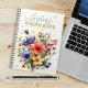 Garden notebook with custom text on the front. A pretty bunch of wildflowers make up the image on the front, in red, purple, and golden yellow. A light layer of bees fly around the background. Include a name at the top in modern script with title beneath. Sample title is, "garden notes". Use the lined pages inside to keep track of purchases for the yard, planting times, plant needs, and successes.