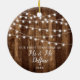 Personalized Gay Wedding Rustic Wood String Lights Ceramic Ornament. Personalize with your custom information on both front and back.