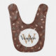 Soft customizable baby name bib adorned with fall leaves in warm earthy tones for ultimate cozy autumn vibes.