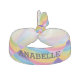 Use these cute girly ties to keep your hair in place. Personalize the text with a name or short phrase or quote. They also make a great fashion statement, as an alternative you can wear it on your wrist. The design is a geometric rainbow pattern. These also make great party favors for birthday parties.