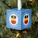 An angel dressed in the flag of Germany on this cube ornament for Hanukkah decor. Designed for families of multiple religions to celebrate the holidays. The Hanukkah German Flag angel flies in a white center of squiggly squares on a blue background of squiggly squares. Add a name to personalize. Add the year to customize. Or, add your own text
