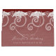 Large elegant wedding gift bag was done in a trendy color look and white royal lace pattern. A classic style white text area label has custom text, on both sides of the bag, ready to personalize.
