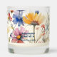 Lush, hand painted watercolor wildflowers cover this personalized giftable scented candle that features a name and an optional line for whatever -- bride and groom's initials? or a memorable date. The autumn-hued flowers feature terra cotta orange daisies with yellow orb centers and flowers in beautiful shades of blue and yellow, joined by red and greens, along with hazy grays and golds. The text is in a dark denim blue font that evokes a Country Western vibe. It's a simple matter to substitute your optional details for our placeholders. Click the "personalize" link to create a lovely gift for bridesmaids and other helpers at your wedding (it coordinates with our Fall Wildflowers Wedding Suite) or anytime you want to gift a memorable keepsake to wildflower lovers, or friends and relatives celebrating special occasions.